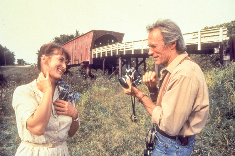Película romántica pero donde los protagonistas no son jóvenes guapos y en plena flor de la vida, sino dos personas maduras, para las cuales la vida parecía no depararles nada nuevo, sino la rutina mas insoportable, sobre todo en el personaje de Meryl Streep, con todos sus sueños condenados por una vida familiar absorbente y monótona, en un pueblo perdido de la America profunda.